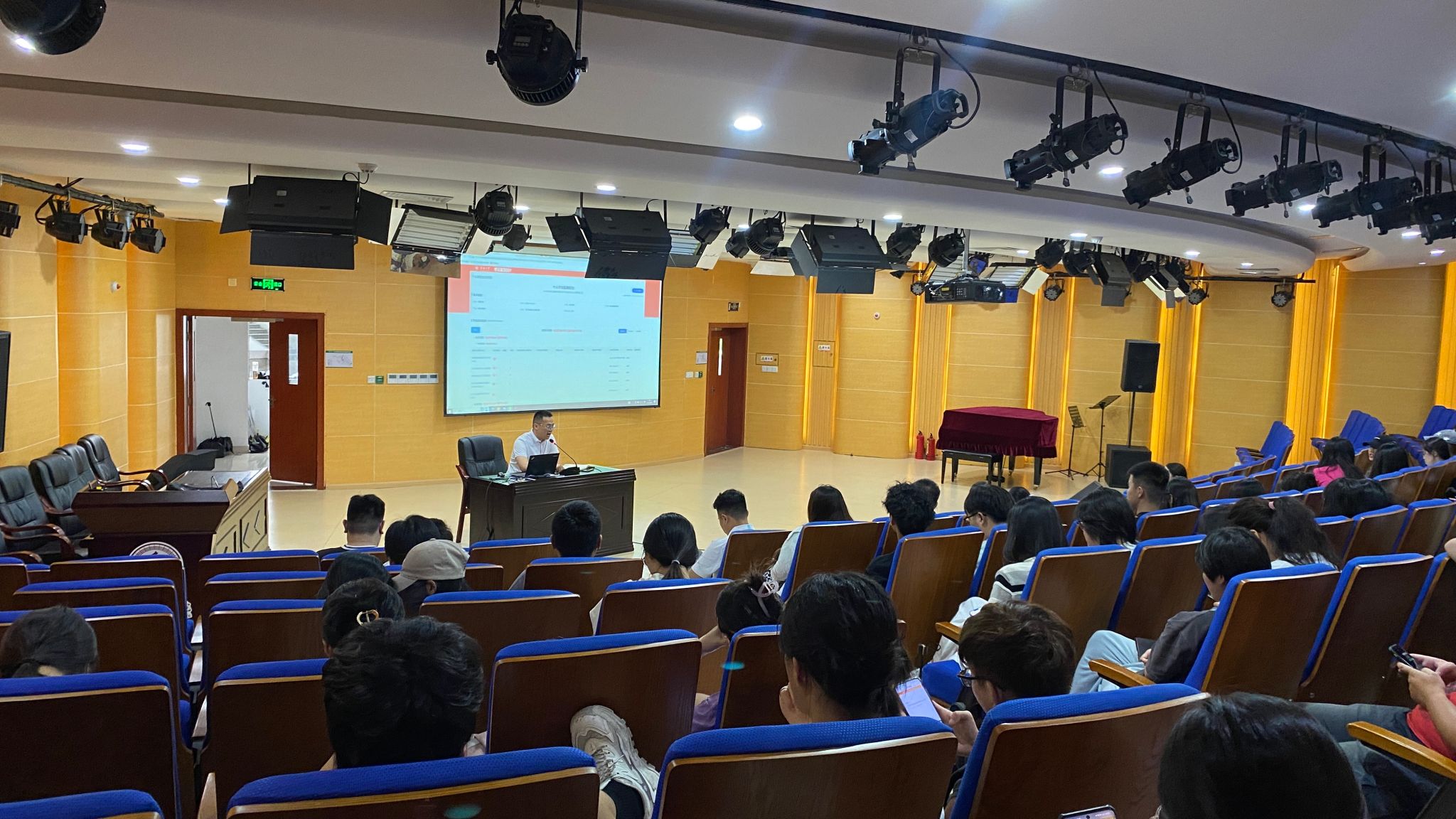 2024届毕业生实习暨就业动员大会在音舞楼216多功能厅召开,2024届全体毕业生、毕业班辅导员和班主任、学院负责实习和毕业论文的老师等参加会议,副院长杨曦婷出席并主持大会。