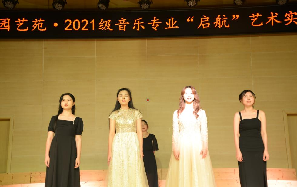 艺术实践汇报会选取13个节目,以重唱、合唱、民乐合奏、重奏、双钢琴四手联弹等艺术形式呈现,2021级音乐系的同学们围绕着“启航”的主题向所有观众呈现表达出了他们对未来的期许。